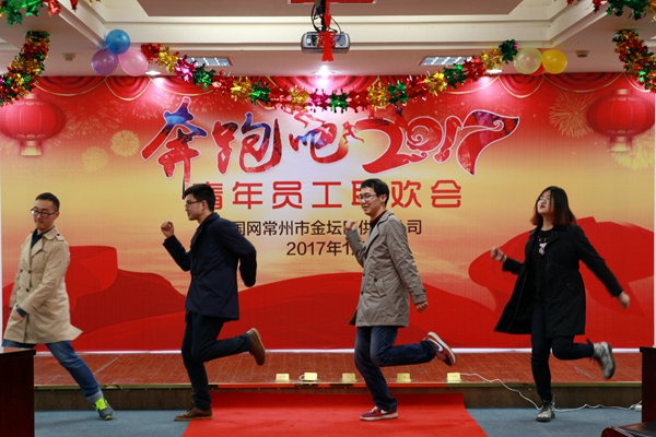 1月22日下午,金坛区供电公司工会举办了“奔跑吧2017”青年员工联欢会。公司总经理佘国正、党委书记丁国平与青年员工齐聚一堂,共同迎接2017春的序曲。 (金坛区供电公司工会)