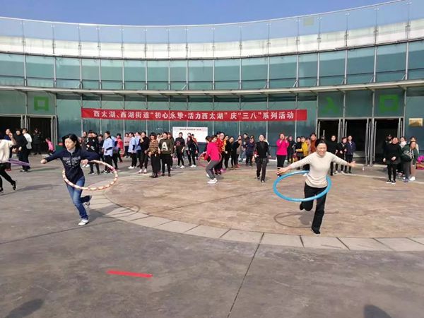 今年是纪念三八国际劳动妇女节108周年,为了激励女职工与新时代同行、做新时代新女性,3月3日下午,常州西太湖科技产业园总工会、妇联联合武进区西湖街道总工会、妇联开展了“初心永挚·活力西太湖”庆“三八”系列活动。活动于风景优美的花博园举行,来自园区8个企业、7个村(社区)工会的近200名女职工组成了16支队伍参加。 本次活动分为三个系列。第一个系列为:“初心永挚•环保之心”,首先由来自万桦(常州)新材料科技有限公司工会的工会干部陈晓庆发起环保倡议,号召所有的女职工,永挚环保初心,携手努力,保护环境,珍爱生命!随后大家进入花博园的自然馆参观并听取环保科普讲解。参观结束后,大家纷纷在横幅上签字参加志愿者活动,扩大了园区巾帼环保志愿者队伍。 第二个系列是:“初心永挚•奋斗之心”,由拔河、呼啦圈和跳绳三个趣味比赛项目组成,所有参赛队根据比赛要求,抽签决定比赛顺序,最后角逐出前三名。在比赛过程中,所有队员都十分投入,团队协作,共同拼搏,最后由常州山由帝杉防护材料制造有限公司代表队获得第一名,聚新社区和长汀村代表队分别获得第二名和第三名。 第三个系列是:“初心永挚•爱国之心”,为增强园区内女职工的国家自豪感和爱国精神,活动最后给参加活动的女职工们发放了电影票,观看爱国主义影片《红海行动》。
