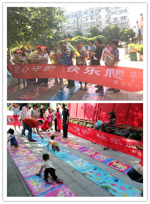 为庆祝中华人民共和国成立70周年,5月29日下午4点,红梅街道翠北社区工联会邀请辖区单位16个职工家庭,开展“爱心守护,快乐爬行”职工亲子游戏活动。 活动现场,参与比赛的职工们早早带着宝宝来到翠北社区中心广场上。比赛前,按照年龄段分成4组,每组4位选手。比赛一开始,第一组宝宝由家长陪同,趴在爬行垫的起点线上,裁判吹哨后,宝宝们迅速行动起来,个个精神抖擞,好似运动健将。在旁的家长们甘当啦啦队,争做教练员,为自家宝宝加油鼓劲,场面热闹非凡,吸引路边的行人和邻居们驻足观看。4轮比赛后,4位宝宝获得小组第一名。他们继续参加决赛,经过职工亲子共同努力,最终产生一名冠军,一名亚军,二名季军。有趣的亲子游戏,让家长跟孩子们玩得非常尽兴,欢笑声一片。 通过此次亲子活动地开展,不仅增进职工与子女之间的交流,拉近亲子间的距离,而且,让宝宝在快乐游戏中,与父母们一起庆祝六一儿童节,共同迎接祖国的生日。
