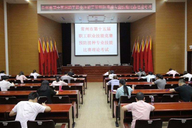 为贯彻落实国家《疫苗流通和预防接种管理条例》、江苏省《预防接种操作手册》规定要求,强化预防接种能力建设,规范预防接种管理,确保疫苗接种安全,提升全市预防接种专业人员理论水平和操作技能,按照《常州市第十五届职工职业技能竞赛预防接种专业技能比赛方案》,7月3日,我市举办第十五届职工职业技能竞赛预防接种专业技能比赛。比赛分为个人赛理论考试以及个人赛技能考核,分别在市疾控中心和新北区春江镇卫生院进行。