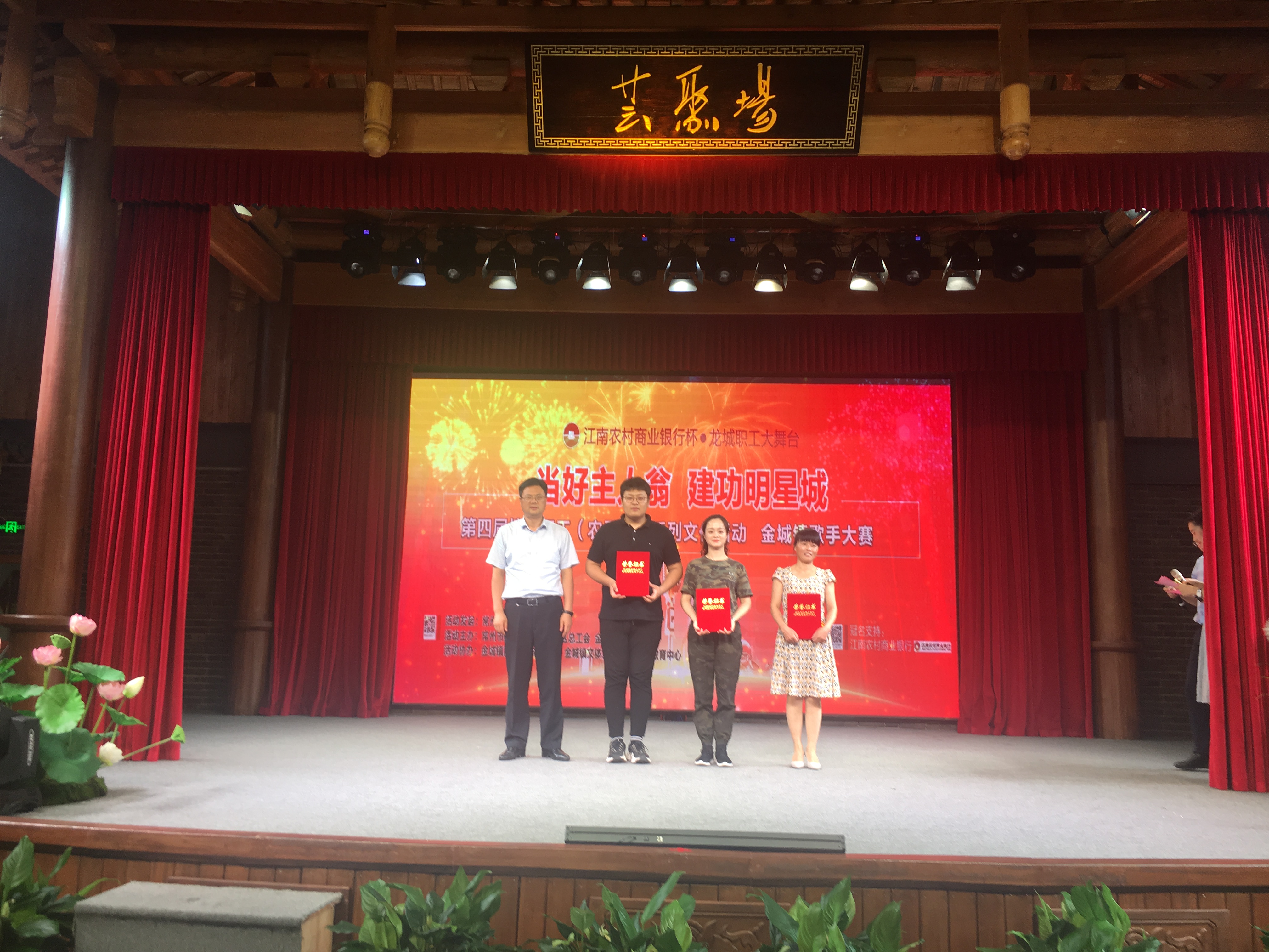 为深入学习贯彻落实习近平新时代中国特色社会主义思想,庆祝中华人民共和国成立70周年,反映新时代金坛职工爱祖国、爱家乡的精神风貌,丰富职工精神文化生活,6月29日,常州市金坛区金城镇总工会在红太阳科技园芸剧场开展了“当好主人翁 建功明星城”情系职工歌手大赛。区总工会副主席石新华先生、金城镇总工会主席潘明志先生以及江南农村商业银行金坛支行行长华岚女士等人出席本次活动。这次活动共吸引了两百多名群众前来观赛。 本次活动邀请了金坛区总工会宣教部部长宋钧先生以及音协的两位专业的评委老师担任现场评委,比赛采用十分制,对21名参赛选手的台风形象和演唱水平进行综合评分。在比赛的间隙,江南银行还准备了答题送礼环节来调动现场气氛,群众都争相答题,为自己赢得比赛纪念品,把现场气氛推向高潮。 最后,经过激烈的角逐,葛海燕和李沁培分别《春天的芭蕾》和《我们就是中国》获得本次比赛的一等奖,本次比赛还选出了二等奖3名,三等奖5名,区总工会主席石新华先生、金城镇总工会主席潘明志先生以及江南农村商业银行金坛支行行长华岚女士分别为一、二、三等奖选手进行颁奖,并现场合影留念。(常州市金坛区金城镇总工会)
