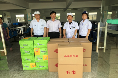 入夏以来,我市气温一路攀升,骄阳似火,酷暑难耐,为了给职工及时送去一份清凉和关怀,8月1日上午新闸街道总工会持续开展以送清凉、送安全、送法律为主题的高温慰问活动。街道纪工委书记、总工会主席陈孝勇,副主席陈亚华以及各村工联会工作人员参加了此次活动。 本次慰问活动分别走访了中英科技、兆邦液压、英中电气、物管、城管、理研精工和江苏昊邦七家企事业单位,为职工送上毛巾、洗衣液和饮料等防暑降温用品和职工安全生产和劳动保护知识宣传资料。 街道纪工委书记、总工会主席陈孝勇,副主席陈亚华深入车间,嘱咐职工们要重视夏季高温防暑工作,合理安排作息时间,切实保障自身的安全和身体健康。同时,还与有关单位负责人亲切交谈,详细询问职工的生产生活情况,要求其改善工作环境,关心职工的生产和生活,保障职工合法权益,促进企业稳定发展。(仇雯倩)