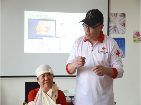 近日,雕庄街道采菱村工会组织开展了一场百人应急救护志愿者培训活动,为期4天。培训内容包括心肺复苏、急救知识培训、创伤救护等基本技能,涵盖理论知识讲解和实际操作培训。 “在进行心肺复苏时,我们要在伤者的右肩附近,通过拍肩膀等方式确认伤者是否还有意识、心跳和呼吸,因为心肺复苏要在无呼吸、无心跳的前提下进行。”在实操培训现场,培训师张建忠一边用道具人偶演示心肺复苏的正确步骤,一边耐心地讲解。 为了实现此次培训的全覆盖,培训学员涵盖了网格责任社工、物业、保安、楼道长及热心居民。