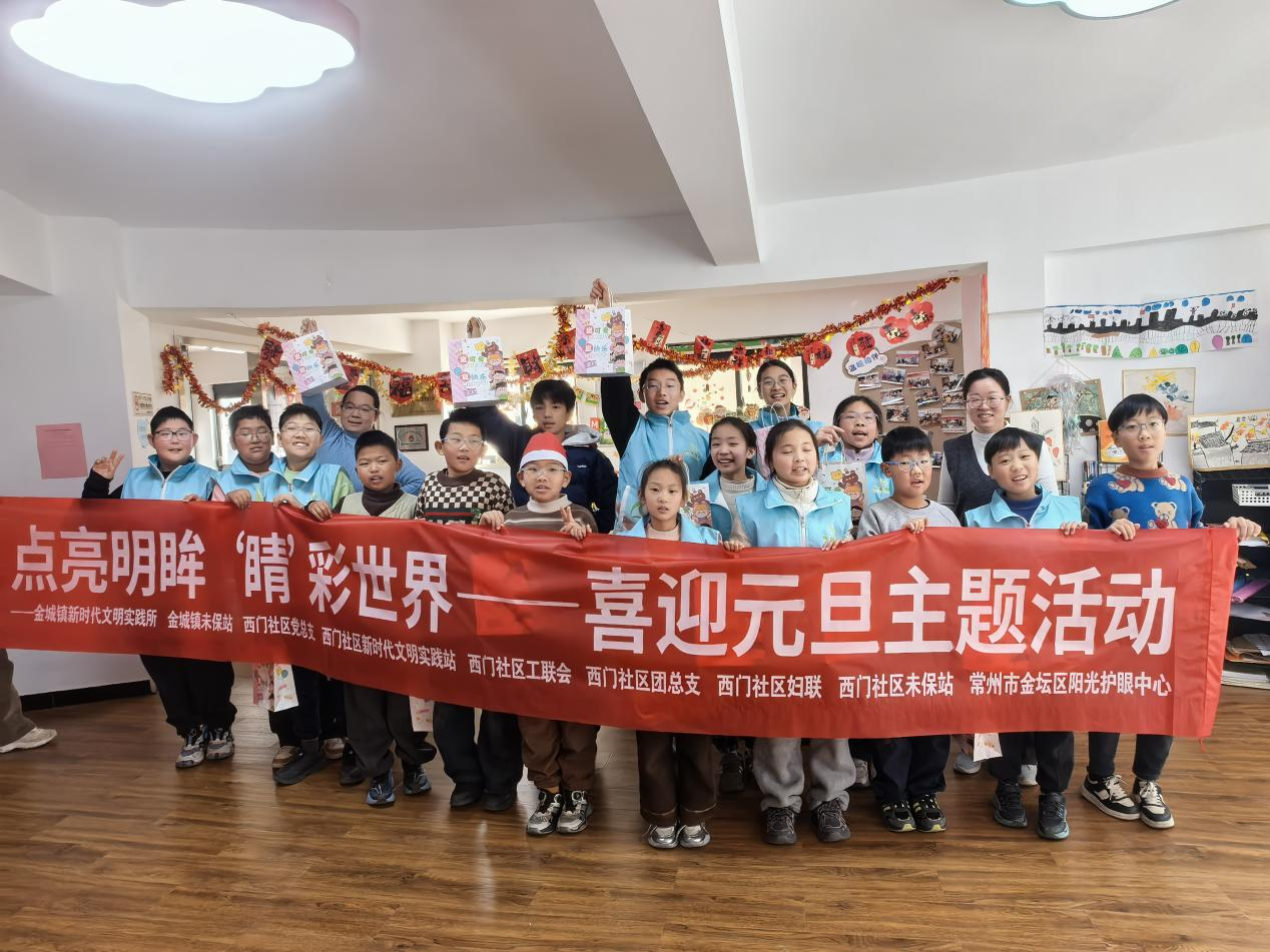 在2025年元旦即将到来之际,一场别开生面的“点亮明眸 ‘睛’彩世界”元旦主题活动于12月29日金坛区金城镇西门社区工联会、妇联、关工委和常州市金坛区阳光护眼中心在西门社区儿童活动室温情开启。25个孩子们齐聚一堂,在丰富多彩的体验中,共同学习爱眼知识,传递健康理念,以清澈的双眼和灿烂的笑容迎接新年的到来。