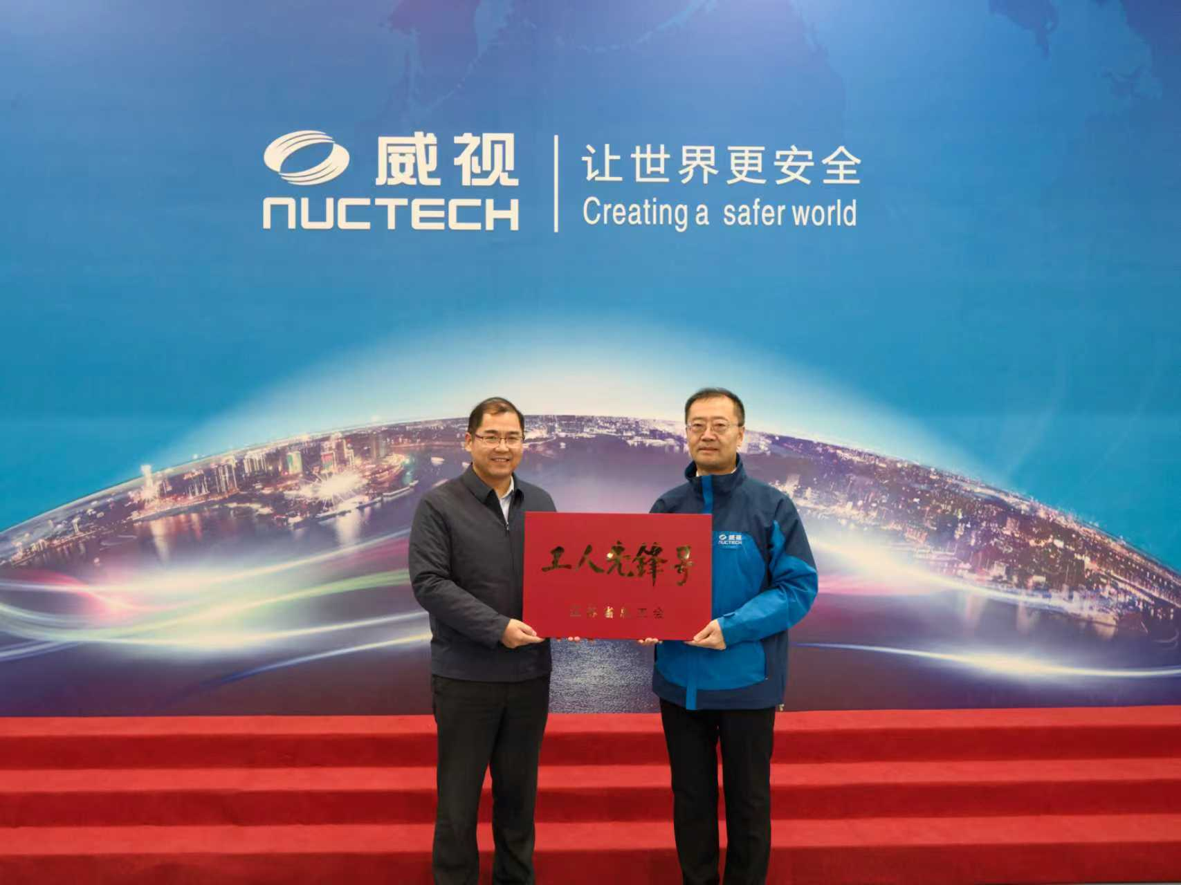 近日,常州市总工会党组书记、副主席张小军一行赴同方威视科技江苏有限公司,为该公司智能产品管理部颁发“江苏省五一工人先锋号”荣誉奖牌。金坛区总工会主席吴志高、华罗庚高新区总工会主席黄巍共同参加授牌仪式。