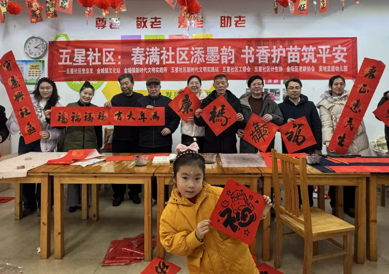 年味渐浓,墨香传情。为传承中华优秀传统文化,营造祥和喜庆的新春氛围,践行“护苗”行动初心,近日,金坛区金城镇五星社区了联会联合老龄协会、美地蓝庭幼儿园共同举办“春满社区添墨韵 书香护苗筑平安”新春文化活动,邀请金坛本土书法家现场挥毫送福,组织辖区儿童体验福字拓印,以笔墨书香传递廉洁理念,为社区居民送上别具意义的“年礼”和“廉礼”。